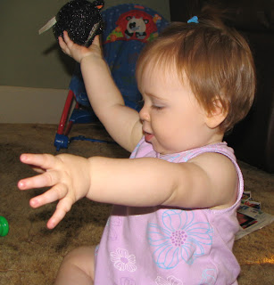 Avery is talking to the camera. She has been "talking" so much lately. Expressing her wants and need in her own little noisy way.